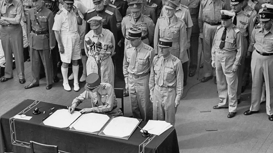 Délégation française (général Leclerc et MacArthur)
